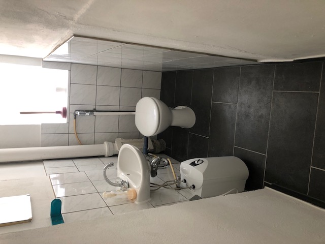 Ein separates WC befindet sich im Flur (im Treppenhaus und damit außerhalb der Gewerbeeinheit).