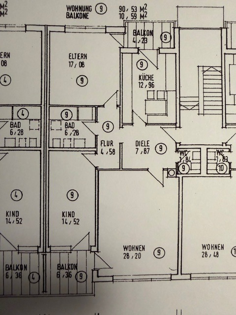 Die gesamte Wohnanlage, die über vier verschiedene Hausnummern verteilt ist, umfaßt lt. Teilungserklärung 24 Wohnungen; das Haus, in dem sich die angebotene Wohnung befindet, umfaßt 6 Wohnungen angrenzend an die Natur. Die ca. 98,62 qm große Wohnung inkl. zwei Balkone (ca. 10,59 qm zu 50% auf die Wfl. angerechnet) liegt im 1. OG, d.h. vom Wohnzimmer mit Südbalkon aus genießen Sie entsprechenden Weitblick auf angrenzende Grünflächen.