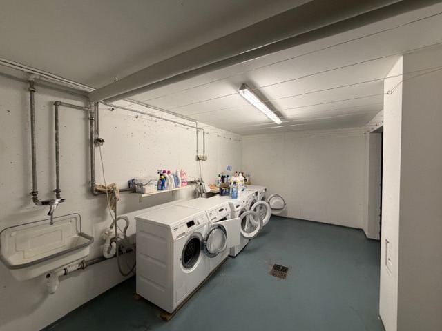 Im KG befinden sich neben einem der Wohnung zugeordneten ca. 28 qm großen Kellerraum mit Fahrradabstellmöglichkeit auch ein Wasch- und Trockenraum zur gemeinschaftlichen Nutzung.